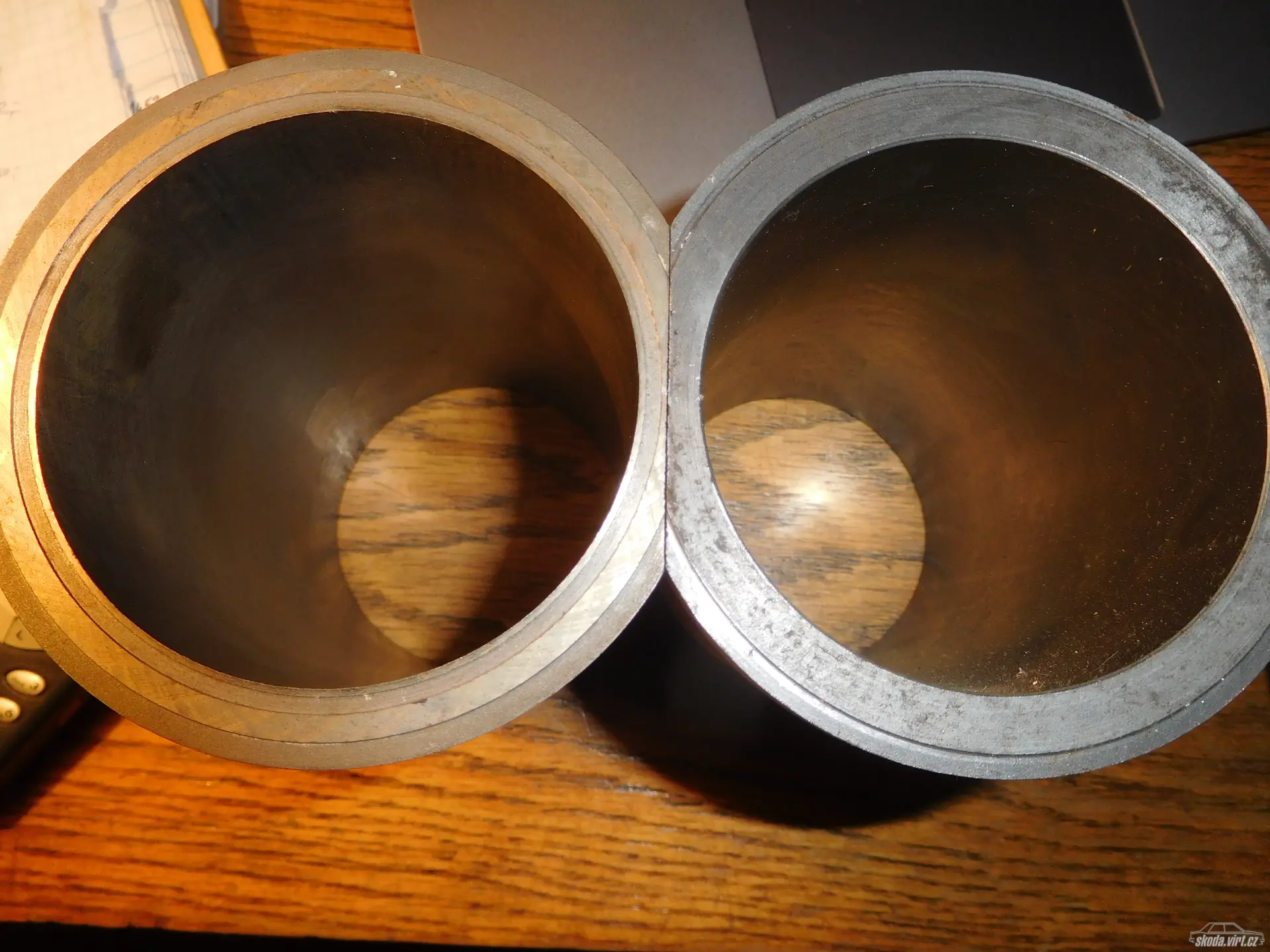 Vnější rozměry stejné, jako vložka Škoda 1100/110/120, vrtání 73,55 mm a nahoře vyfrézovaná drážka (na nějaké spešl těsnění hlavy?).