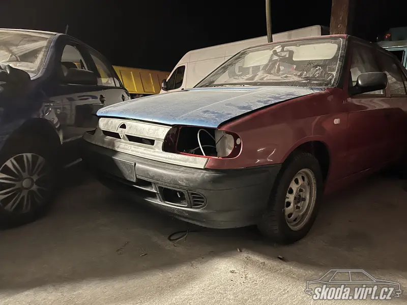 odstrojila se a postavila se do růžku v dílně „V té první dílně," myslím, že kolem května se naskytla možnost si rozebrat felicii na díly za cenu železa, vzal jsem si světla, nárazník, kapotu, masku a výstuhu pod nárazník. Nějak hned zhruba dva týdny nato jsem s tátou podnikl cestu pro originální chladičovou stěnu a měl jsem vše co bylo potřeba, aby se mohla odvézt ke klempíři.