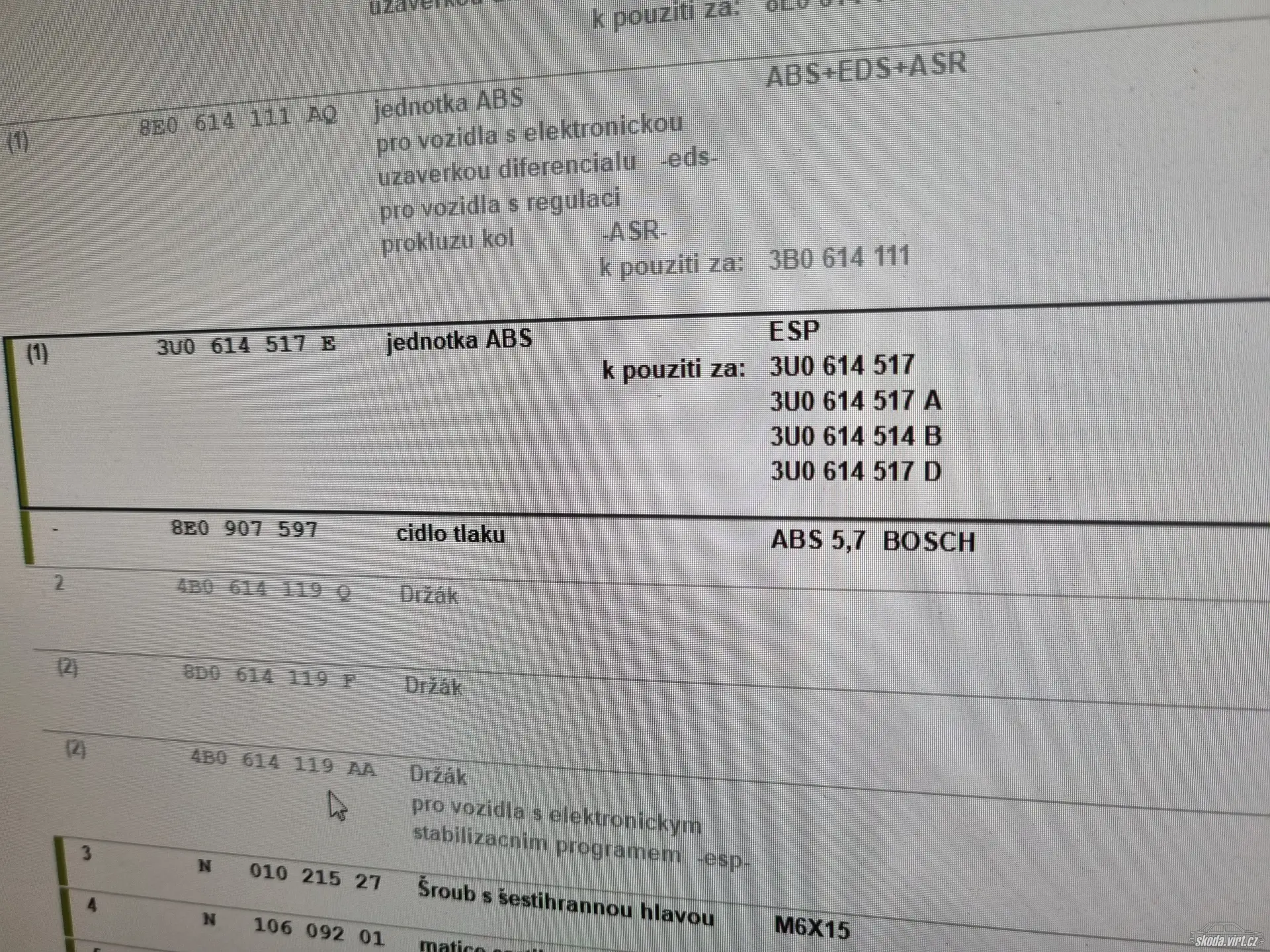 Měl bych dotaz k ABS jednotkám na supu 1 , jde někde zjistit záměnnost ? Resp. Mám jednotku čísla 0265 950 063 (3U0 614 517 B) tato je vadná , je možno ji zaměnit jinou ? Nebo mám shánět přesně tu stejnou jako sem z auta vytáhnul ?