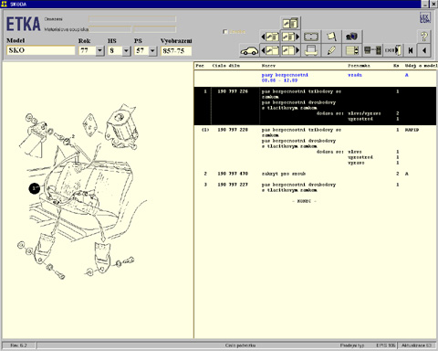 -> Labros: ETKA vypadá takto. Umí to samé co píše Jettronic, kdyby se dalo připoji na sklad MB, tak uvidíš jaké díly mají skladem, počet kusů a za jakou cenu.