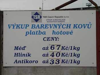 Jen na doplneni: ty ceny na vyveskach sberen jsou vetsinou za peknej elektrovodnej hlinik (z kabelu, šíny) cena za bloky je vetsinou nizsi - typuju tak kolem 30-35Kc/kg