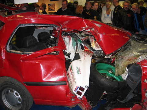 - Tato nehoda byla vystavena na Stockholmském Motorkářském veletrhu