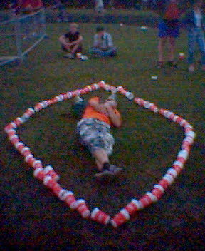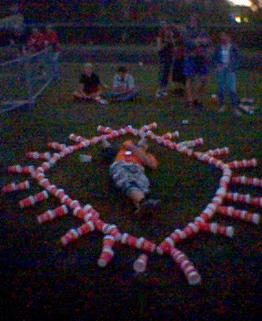 Tak včera u nás proběh koncert Kabátů. S M.a.R.im jsme behem predkapel nemeli co delat az jsme zahlidli tohoto chudaka spiciho uprostred davu... lidi s k nemu pekne odkladali prazdny kelimky...