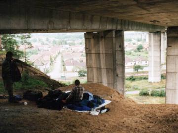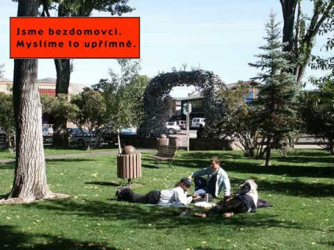 -> Majkl: mno nad mostem jsou nejaky zahradkarskjy kolonie a jedna zahrada vypadala jako neudrzovane a tak sem si ji tam postavil - sak mi to poradil Venca Kobercak - to je desnej tip, chrape prikritej kobercem v altanku a dohlizi aby se ji nic nestalo