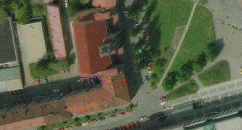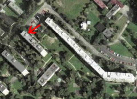 Tak tady bydlím já (jak je to červené) a v tom modrém kroužku parkuju