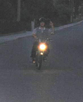 -> VeTëV: a tak prece jen sem dam i nas nejrychlejsi stroj. Babetta s luxusnim nakupnim kosikem na zadnim nosici :-) P.s. omluvte horsi kvalitu, je to focene v noci, musel jsem to troch zesvetlit, navic jsem se tou dobou ritil proti fotografovi tak neuveritelnou rychlosti, ze nezvladl poradne zaostrit... :-))