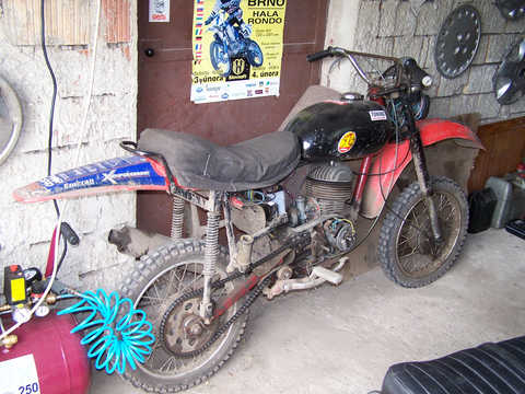 Taky CZ 250 sport, jednovalec, naseho dvorniho mechanika. Sice si moc nepotrpi na vzhledu, ale zato mu jeho cizy jezdily vzdycky nejlip ;-)