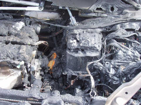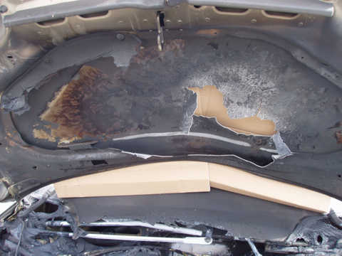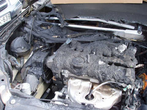 Zvlaštní, přesně takhle vypadalo auto kámoše, když mu sacím otvorem vlítl do izolace pod haupnou z protijedoucího auta odhozenej vajgl...