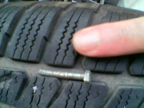 Komu se poštěstí ject do práce a zarazit šroub do gumy...? No mě přece... (a to sem zrovna měl zimáky, který maj vzorek dobrej...)