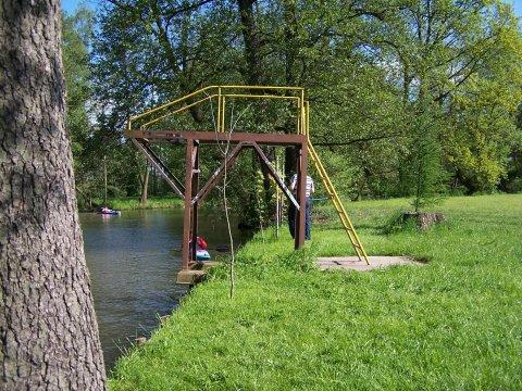 ještě přihodím dvě fotky z naší loděnice ta kovová konstrukce je skokánek hloubka pod ním bajvoko pět šest metrů