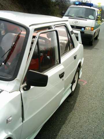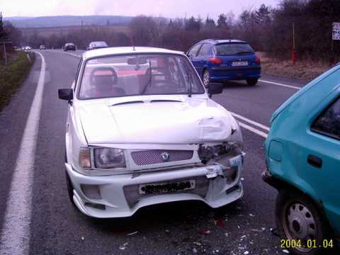 Ten s tou Felicií zabočoval do leva, za ním jedoucí červená Ibiza rapidně brzdí, hodí myšku a vyhne se, to též kamarád s tou modrou škodovkou, ale ten s tou bílou to už nestíhá... Já jel vzadu měl sem to z první ruky, ještě že sem jel 30 metrů za ním..