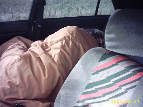 Já jednou spal ve své škodárně se třma holkama, bylo to v létě 2001, jeli sme mojim autem na tokovej čundr, asi 1700km po republice, Jeseník, polsko, náchod, praha, budějovice, lipno, strakonice, brno, kroměříž, olomouc, a domu. A v práglu nebylo kde rozdělat stan, tak jsem zastavili někdy ve dvě v noci u benzíny někde u Mconalds a protože chcalo a nebylo kde rozdělat stan spali jsme v autě, já samozřejmě za volanntem, a holky tam kde seděli., ráno celý auto zapocený a mě bolel celej člověk.