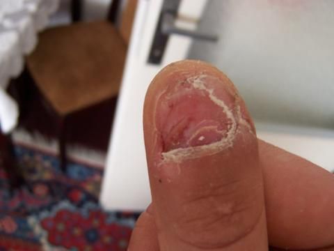 No to je ten môj palec čo som sem dával fotku 03.12.06 23:11:55. Nechet sa "odlepil" od mäsa a medzi "mäsom" a nechtom bola 1 mm medzera :-) A podlievalo sa mi to stále krvou. Tak som tam skúsil trochu z boku zasrihnúť a už to začinalo vyzerať blbo, tak som ten nechet skoro celý zostrihal, to čo tam nakraji zostalo bolo ešte prirastené, tak som to tam musel nechať, lebo by to bolelo. Nemal som sa toho chytať, ešte by som mal teraz nechet stále, síce mŕtvy a odutý, ale mal :-) teraz musím čakať na nový :/
