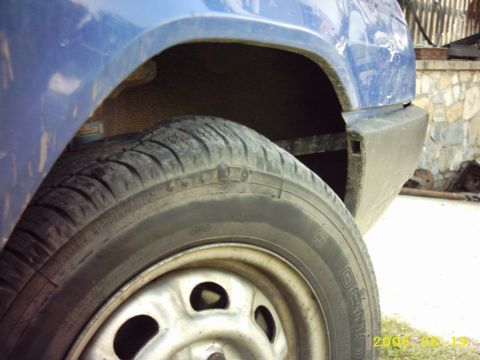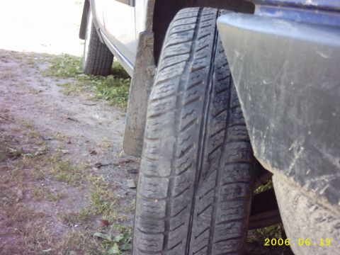 Je to protektor ani ne rok a pul starej. je vyroben v prosinci 2004. auto máme od března. Sem rád že mi to nebuchlo. podle mě to je tím slunkem, protože ráno to nebylo a odpoledne už to dělalo.