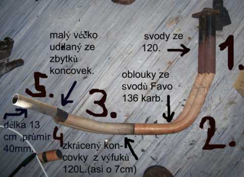 -> petřík: Jestli ti to přidá na výkonu, tak to nevím. Spíš ne. Jen budeš slyšet ohromný kravál a to ti bude přidávat pomyslné oře. Výfuky jsou alchymie. Není to jen tak. RSy měly jen trubky, ale jak dlouhé! A jaký průměr... Taky poloměry ohybů... Toto ti asi fungovat moc dobře nebude.