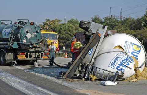 Slyšeli jste o dnešní nehodě na D1 jak se tam vyklopil ten kamion s olejem? Docela napohodu ten týpek v pozadí s cigárem...