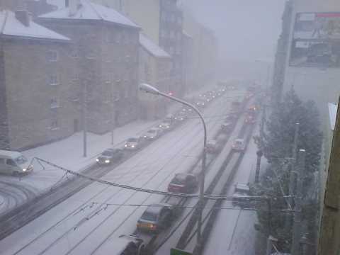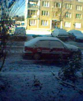Já měl noční a celou noc jsem koukal jak pěkně sněží. napadlo asi 7 cm, ráno každej ometal auto ale my připravení jsme jen zvedli stěrače a sundali igelit z okna. Pak jsem si projel pár zatáček dveřma napřed a šupal jsem domů.