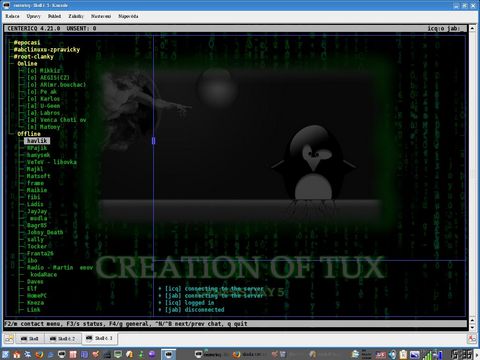 -> Honza M: Myslim si ze to je prave nejvetsi pi... v icq ze pises si s 10 lidma a kazdy je v novem okne... tak mas jedno okno a tam zalozky nebo jak se tomu rika...prepinas si krasne mezi lidma a v jednom okne..Pro me to je o hodne lepsi nez v ICQ. Jinak pouzivej klav. skratky. Napr prepinani mezi tema "zalozkama" nebo kartama s jednotl. uzivateli pouzij CTRL+Tab