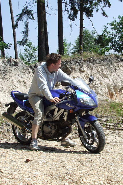 půjčená od spolubydli SV650S, momentálně, bez vidlice masky a předního kola a spolubydla se zlomeným obratlem v nemocnici.. opatrně na mašinách pánové