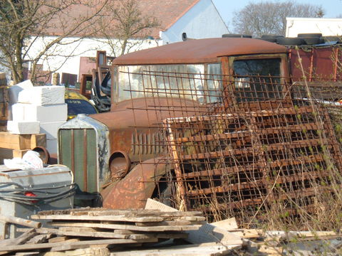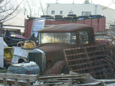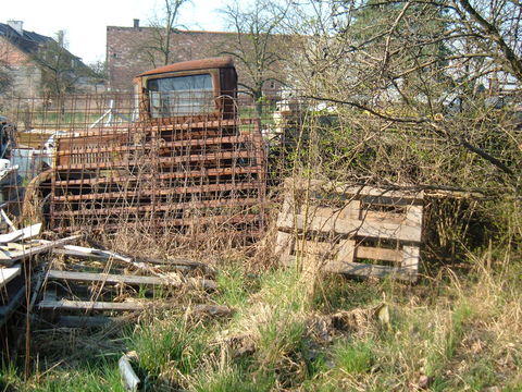 Tak jsem pořídil jenom další mizerné foto, nikdo tam nebyl. Jedná se o náklaďák s rovnou plošinou vzadu, ale je to blbě vidět, je to dost zarovnaný a zpustlý