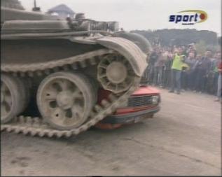 Je to hnusný ,jak si dělají prdele ze škůdek. - a vůbec ,co je to za podívanou ,dívat se na to ,jak auto přejíždí tank? To když už ,tak žávody škůdek a tam to už je legrace, ale tohle ne.
