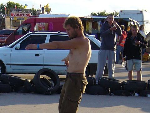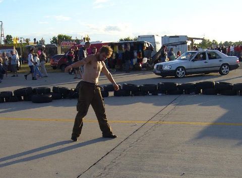 měli ste vidět jak tam trsal u jednoho auta ale bohužel sem zrovna nemel po ruce fotak pak sem ho našel na svim kruháči kterej sem jako pořadajici měl nastarost :D valel se tam uprostřed ....
