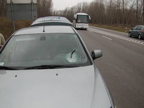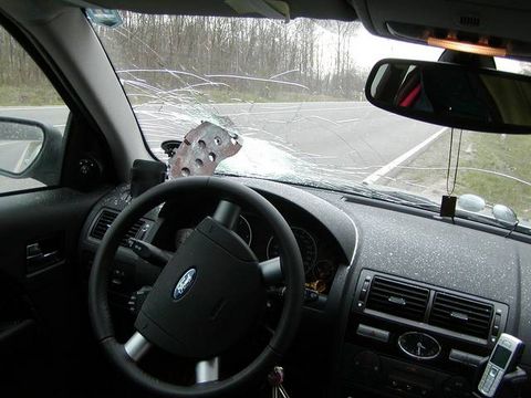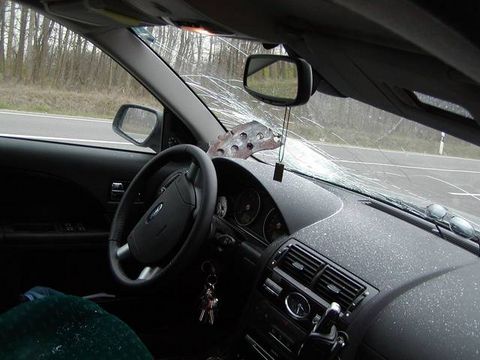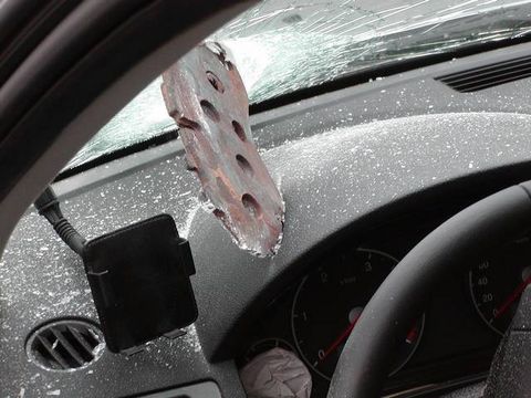 To musí být velmi příjemné, když vám do auta tohle přiletí....