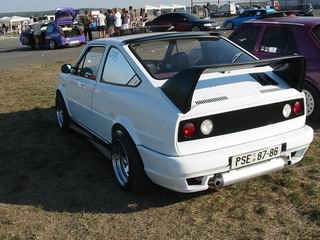 Zblízka je nejlíp zpracovanej ten bílej Rapid, ale to křídlo je humárna. Vytáhne to jenom občas, však by to taky při stávající zátěži zadní nápavy každodenní provoz nevydrželo. Počítejte se mnou : podložky 25 mm + 5 mm, disk 7x15, ET -0.