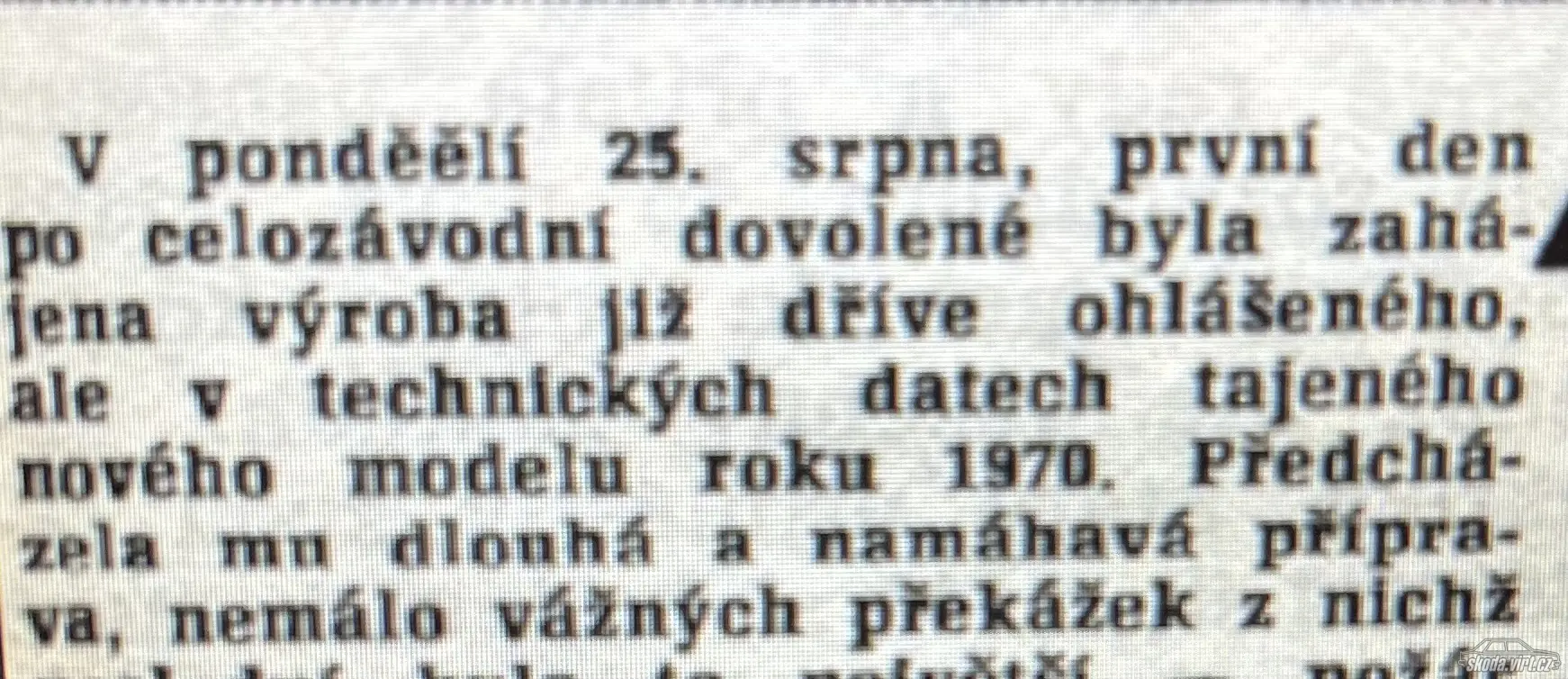 -> Bukaj: Asi by to dohledat šlo, někdy bylo zmiňováno i v celostátním tisku.. ale jednotlivě - třeba u kil jsem si odněkud kdysi uložil, že "výroba bude zahájena po celozávodní dovolené v pondělí 1969-08-25".