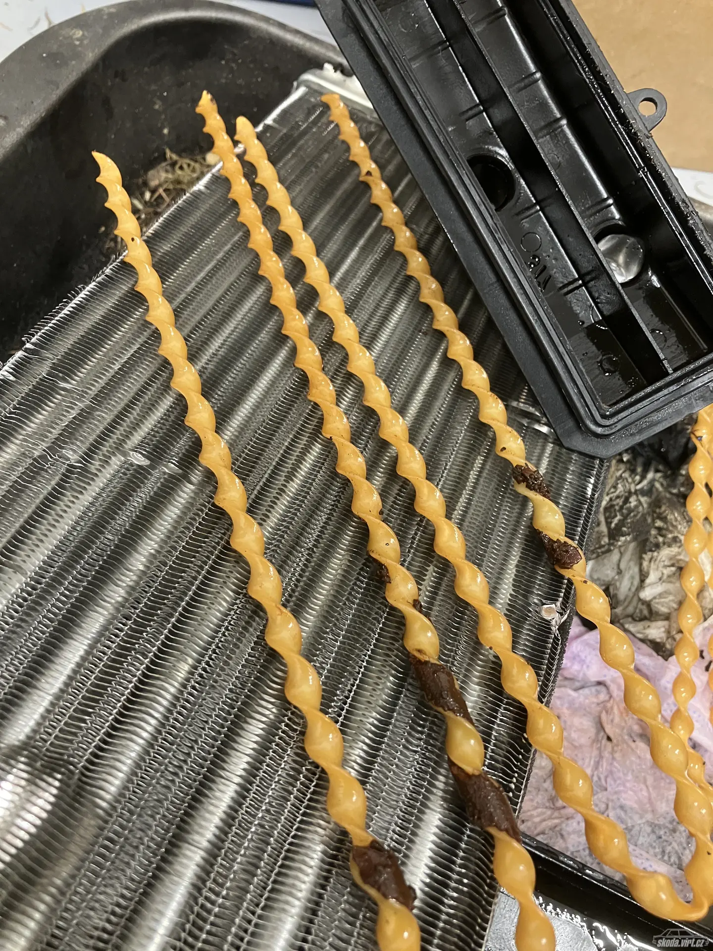 Už sem chtěl nadávat, ze sem ten traktor rozebíral zbytečně, když sem sundal přední víko. Pak sem sundal i zadní a turbulatory, co se ihned nerozpadly vypadaly takto…