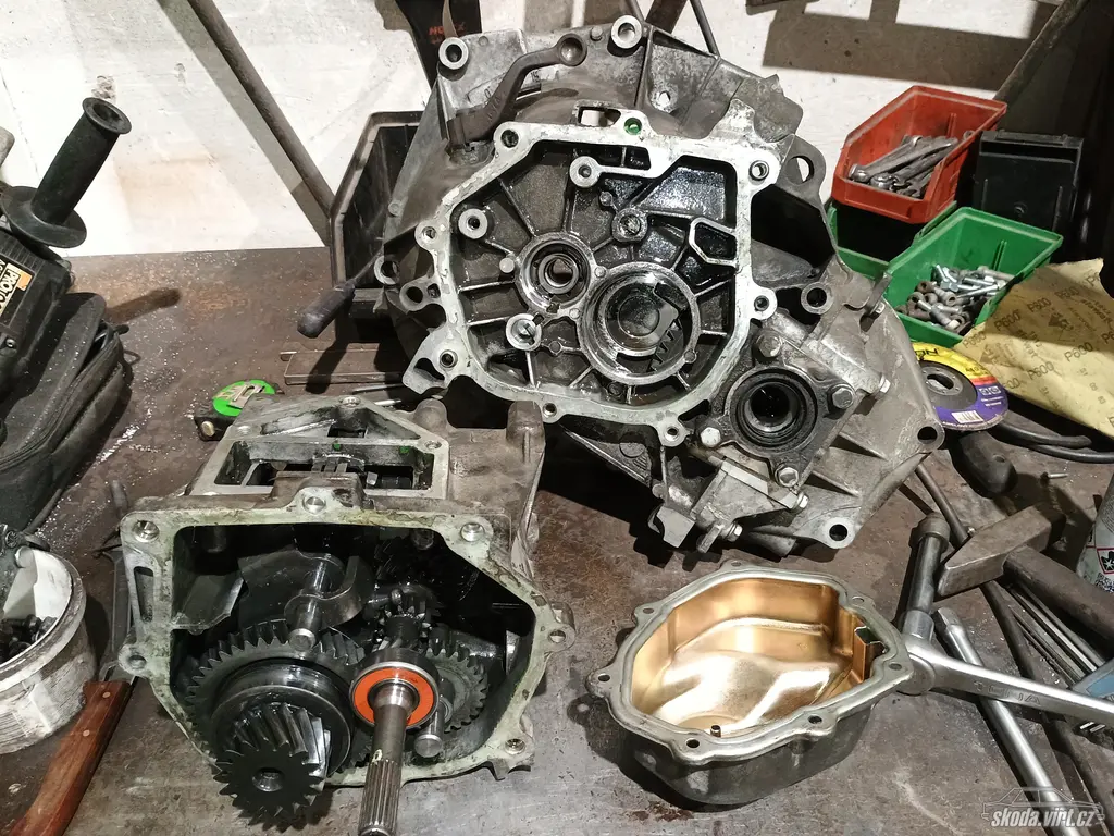 [p#4131968] Byla sice chvilku pauza - tedy práce na jiných strojích, Punto je momentálně kádrová rezerva. Pustil jsem se to nejnepříjemnější závady - hlučná převodovka, nejvíc na 1. rychlost, pak méně a od 4. rychlosti klid. Zřejmě ložisko na mrkvi (soukolí hned za ním je jednička). To jsem měnil v roce 2017. Bylo tam doteď japonské Nachi, vydrželo 60 tis. km výhradně městského provozu. Teda nic moc.