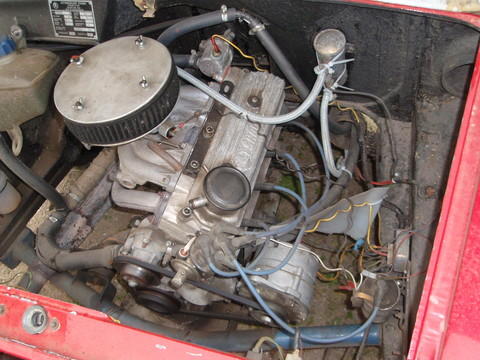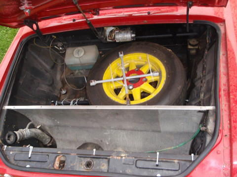 Přední haubna a kaplička s budíky orig 120S Rallye a také znak na zadní haubně