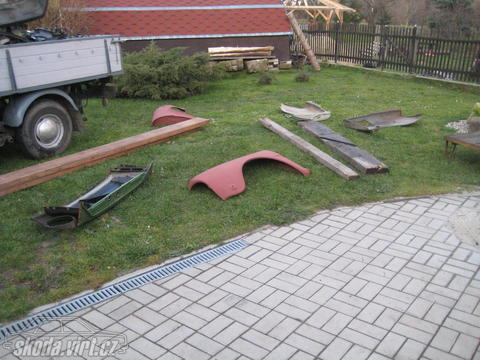 Nové prahy,výztuhy a přední lavičky, 4x blatníky (přední prvotipové)