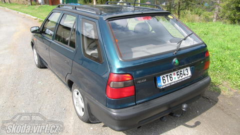 Prodam vuz Skoda Felicia Combi rok v.1997.Najeto 190 000Km.Ekologicka dan je jiz zaplacena.POHON LPG.Tazne zarizeni.Velmi levny provoz.Levne nahradni dily.STK do cervna roku 2014.Velmi dobry stav.Naprosto bez zavad.Pred ctvrt rokem zakoupen za 6 000Kc a namontovan kozeny interier s vyhrivanim sedadel.(Sedacky nevyhrivaji z duvodu absence ridici jednotky vyhrevu)Novy olej,nove rozvody.nove svicky.novy vzduch filtr.nove kotouce.nove brzd.desticky.nove lozicka v prednich kolech.Skvele topy protoze ma novy termostat.ALU kola v cene.pneu.Michelin.v motorovem prostoru dodelana vzpera mezi tlumici proti krouceni.radio Sony a 4×repro.Velmi pekny stav interieru a exterieru.Drobne kosmeticke vady laku.