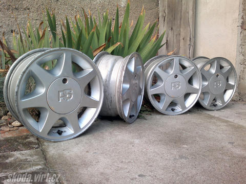 Prodám Alu Centra RS o rozměru 6"x13" 4x108, středová díra 63,4mm. Ke kolum jsou středové pokličky. 1500kč