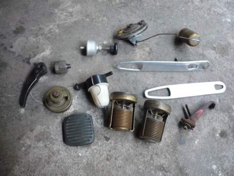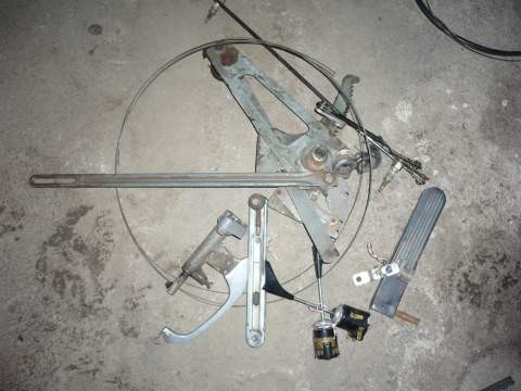 tiahlo sytiča alebo plynu (myslím), mechanizmus sťahovania okien, kľuka dverí, podpera kapoty, plyn. pedál, ovládacie páčky (smerovky, svetlá atď.)