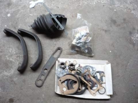 manžeta na poloos+spona, gumy na nárazník, v sáčku sú nové plaváky a trysky do karburátora, všelijaké tesnenia na karb. pod vodnú pumpu atď.