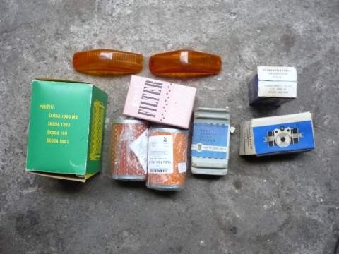 03.10. tie gumy cez narazniky, pocitam, ze su nove a vsetky veci v tej krabicke plus tie veci na karburator, dalej, z predoslej foto tu novu remenicu a tie cidla tlaku oleja, ako aj brzdove. mozes aj tu zasterku skoda a tie nove sklicka do smeroviek, spravis mi na to cenu, a popripade by sme sa nejako s dulacom dohodli, a nejako by sme to dostali do BA. dakujem