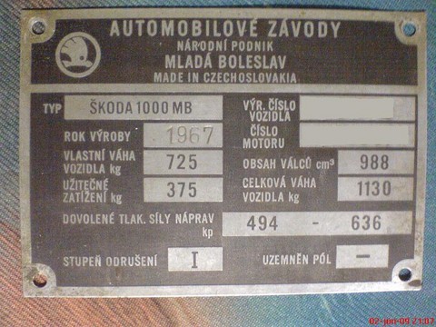 Mal by som zaujem o dva taketo štitky na Škodu 1000 MB.