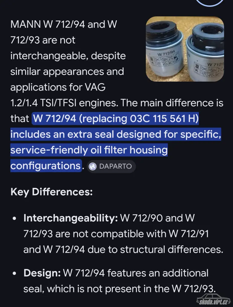 Díky, s tím filtrem to je zajímavé, 94 píší od 7/2010 a todle je 3/2010. Jinak jaký olej doporučujeme? On dával longlife a natesti měnil po 15, prý to vždy okolo 15 napsalo nízkou hladinu, tak nedolival, ale vyměnil.